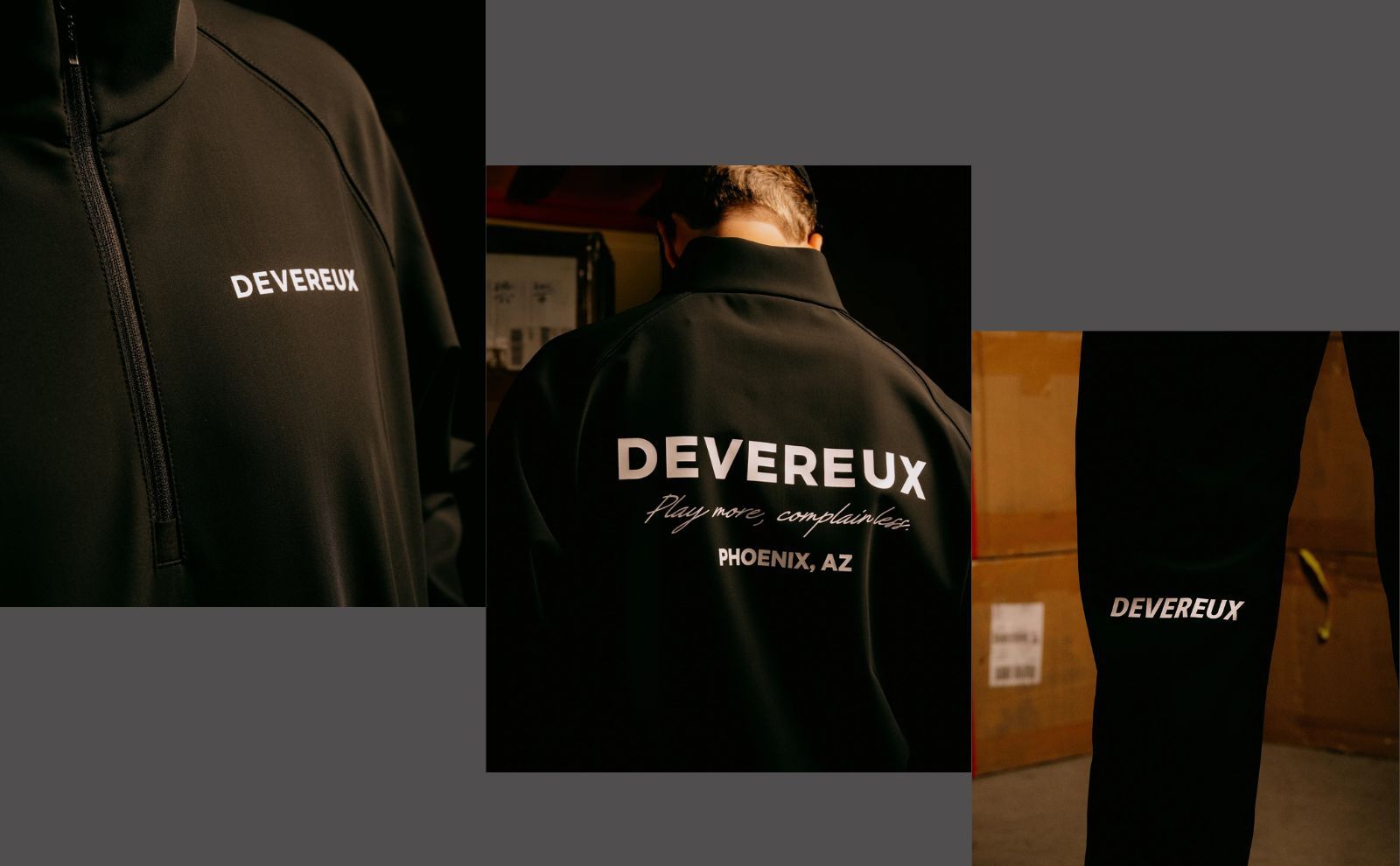 胸・背面・袖などには”DEVEREUX”ロゴがシンプルにプリントされて、ブランドらしい存在感を演出しています。