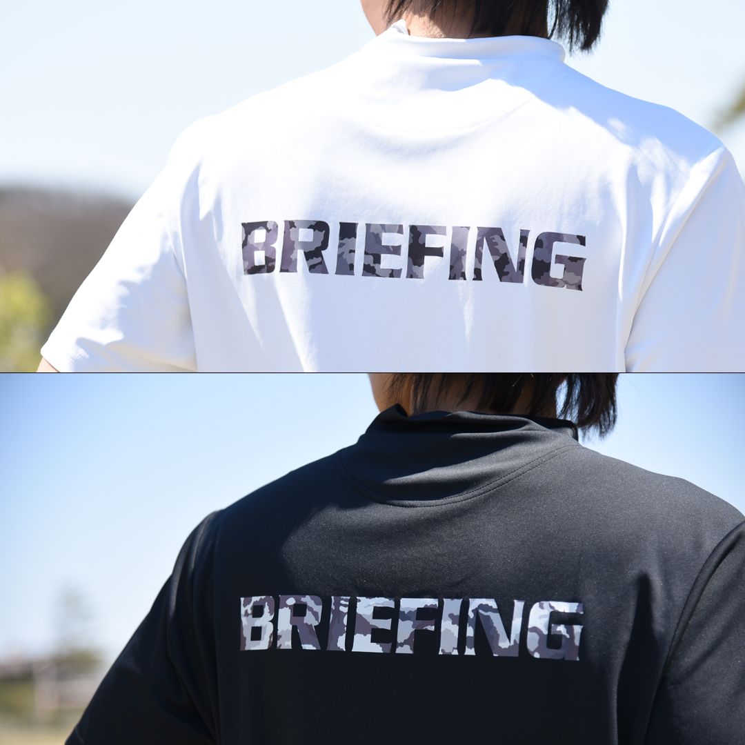 対してバックには存在感あるモノトーンカモフラージュ柄のBRIEFINGロゴを配置。