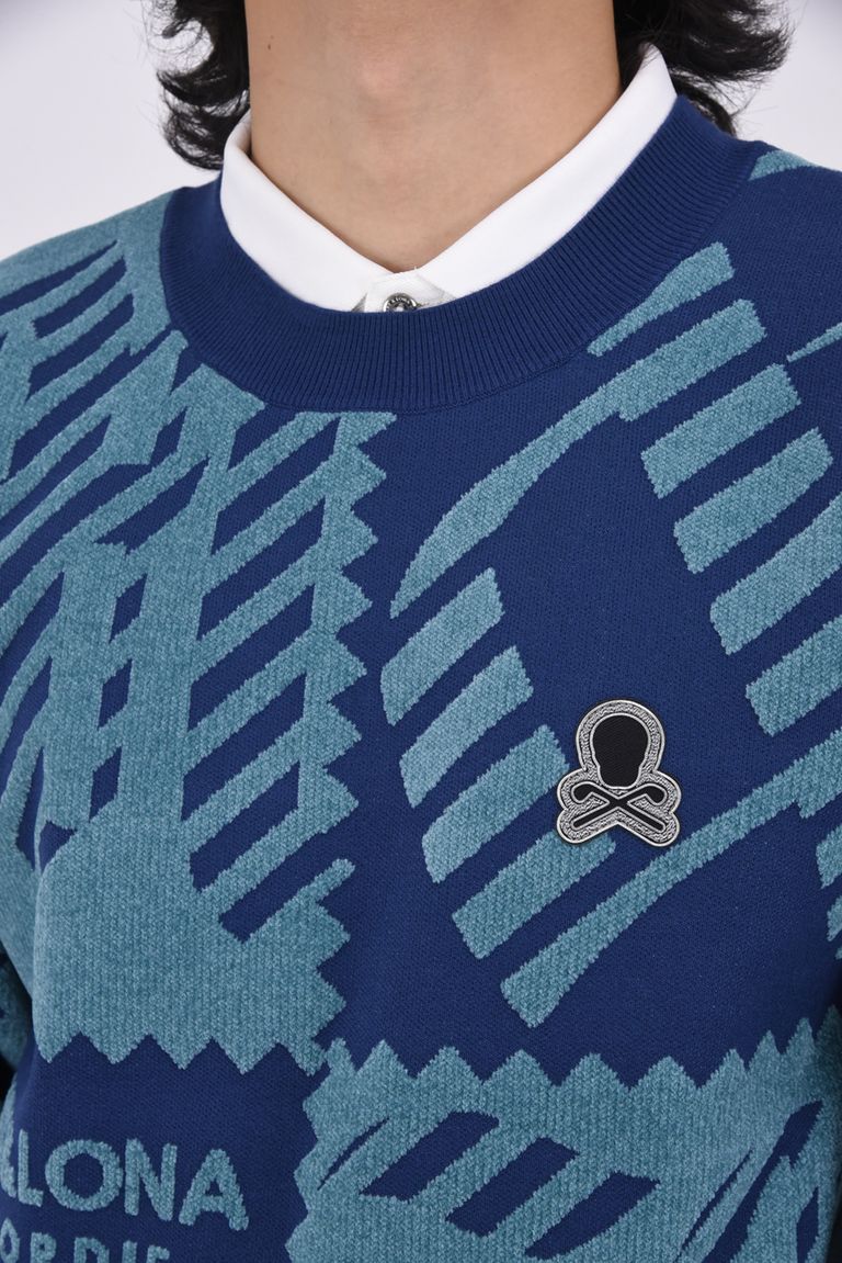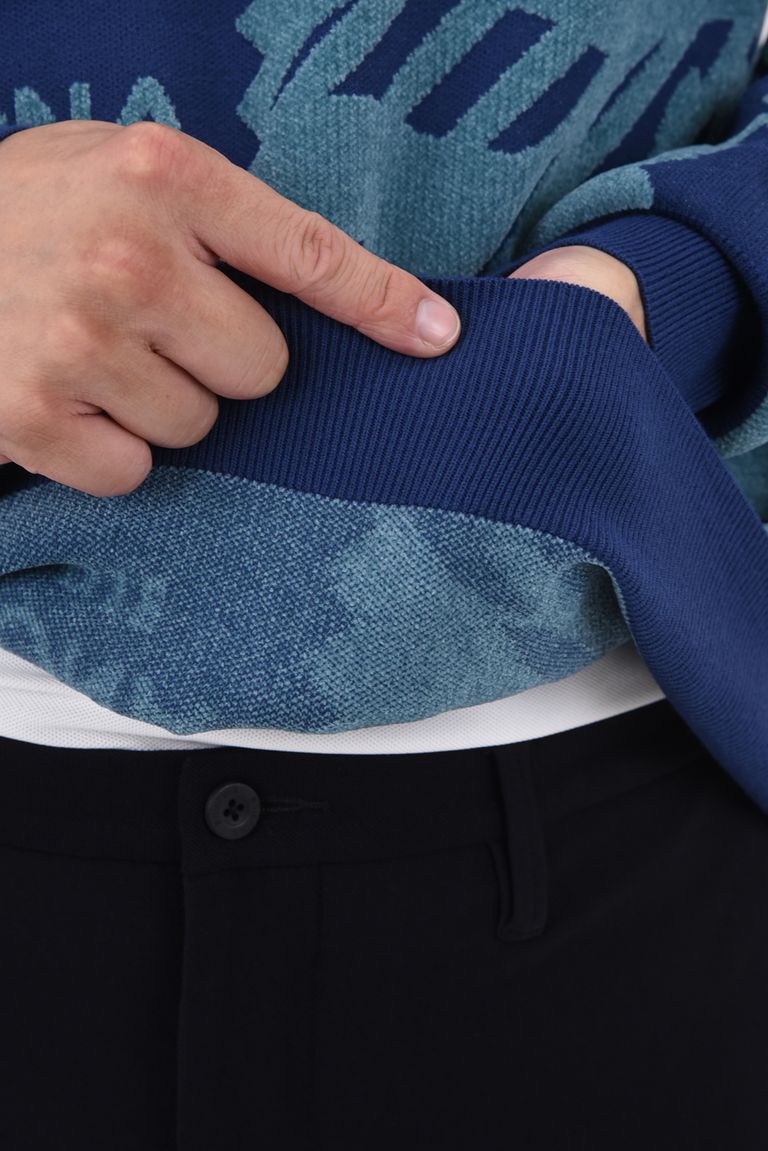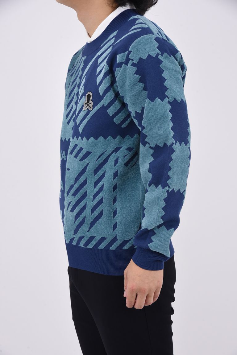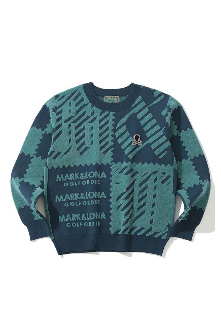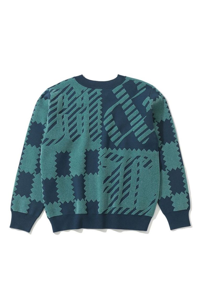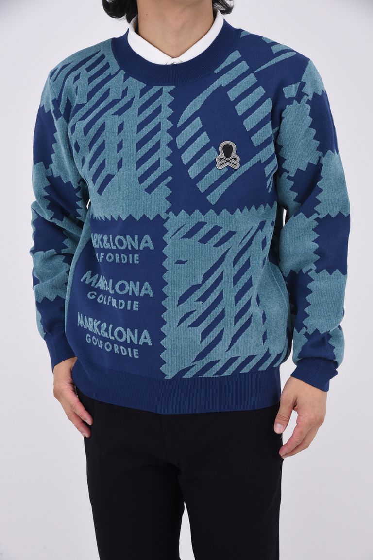 M.C.D CHENILLE CREW KNIT / ブロックパターン クルーネック ジャガードニット (ブルー)