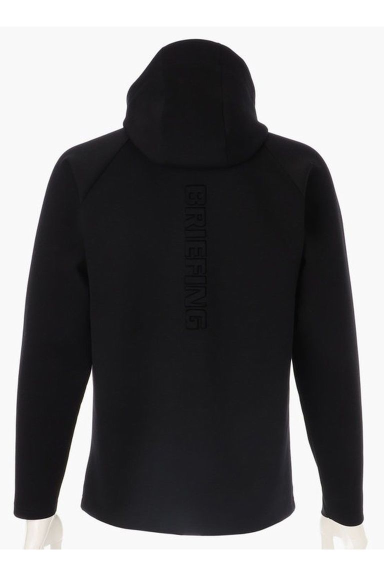 ・背面には凹凸で表現したBRIEFINGロゴを、胸元には見る角度によって光沢や色みが変わって見えるBRIEFINGロゴワッペンを配置した、主張をおさえたアクセント。