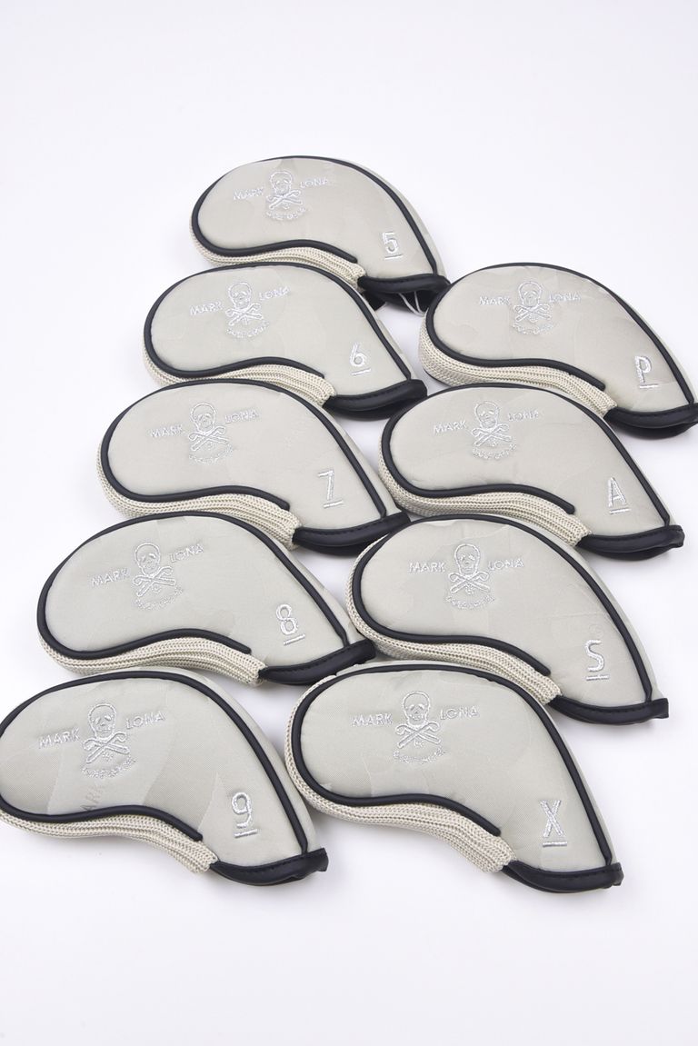 PREMIUM GAUGE IRON COVER / コーデュラナイロン レザーパイピング オリジナルカモジャカード アイアンカバー9個セット (アイスグレー)