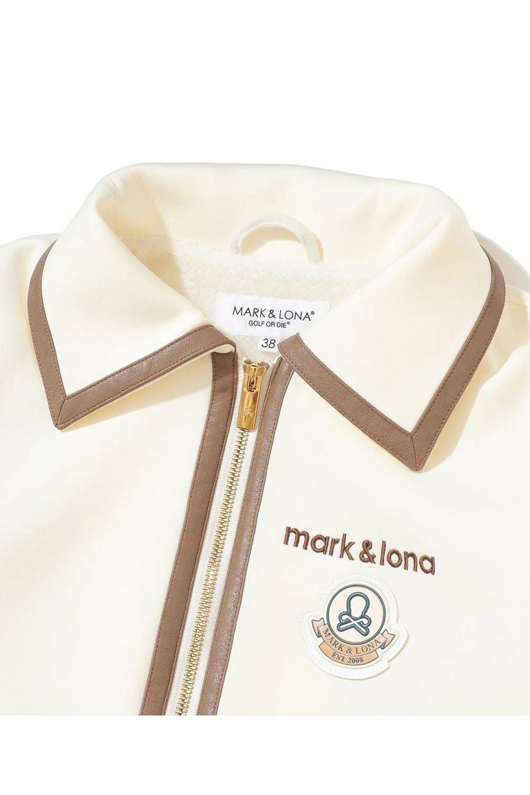 【2025AW】【レディース】 VERA SCUBA KNIT BLOUSON / ダンボールニット レザーパイピング ジップアップブルゾン (オフホワイト)