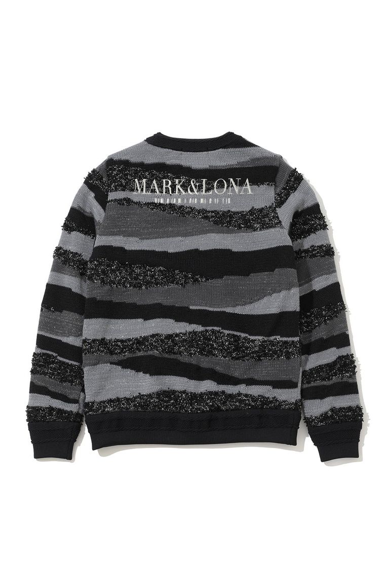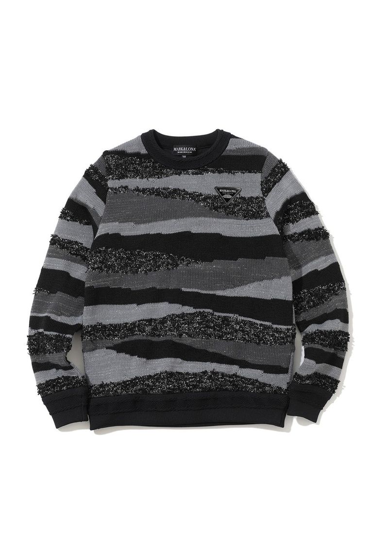 【25AW】【CODE COLLECTION】【レディース】 SDCK / サンドアート調ボーダー クルーネック ニットプルオーバー (ブラック)