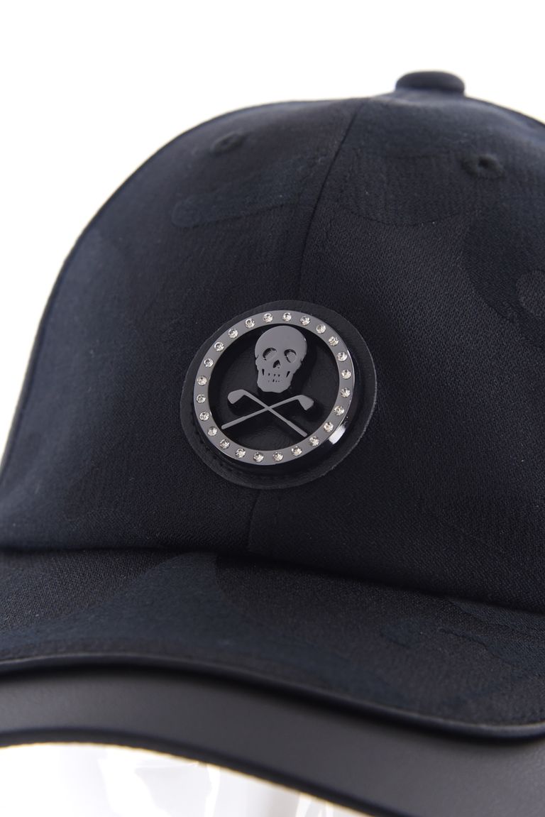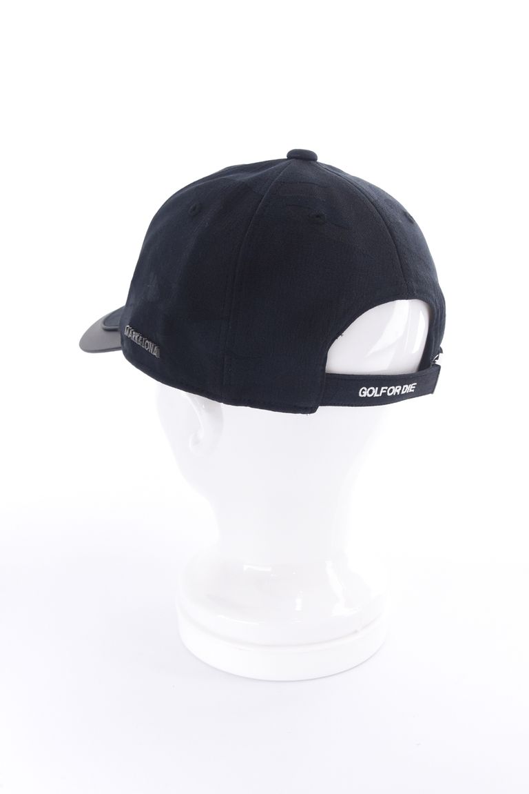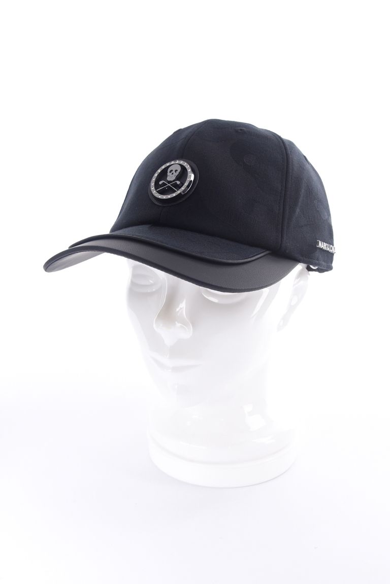 【26SS】 GAUGE CAMO LEATHER TRIM CAP / カモフラージュパターン 異素材切り替え メタルプレート ベースボールキャップ (ブラック)