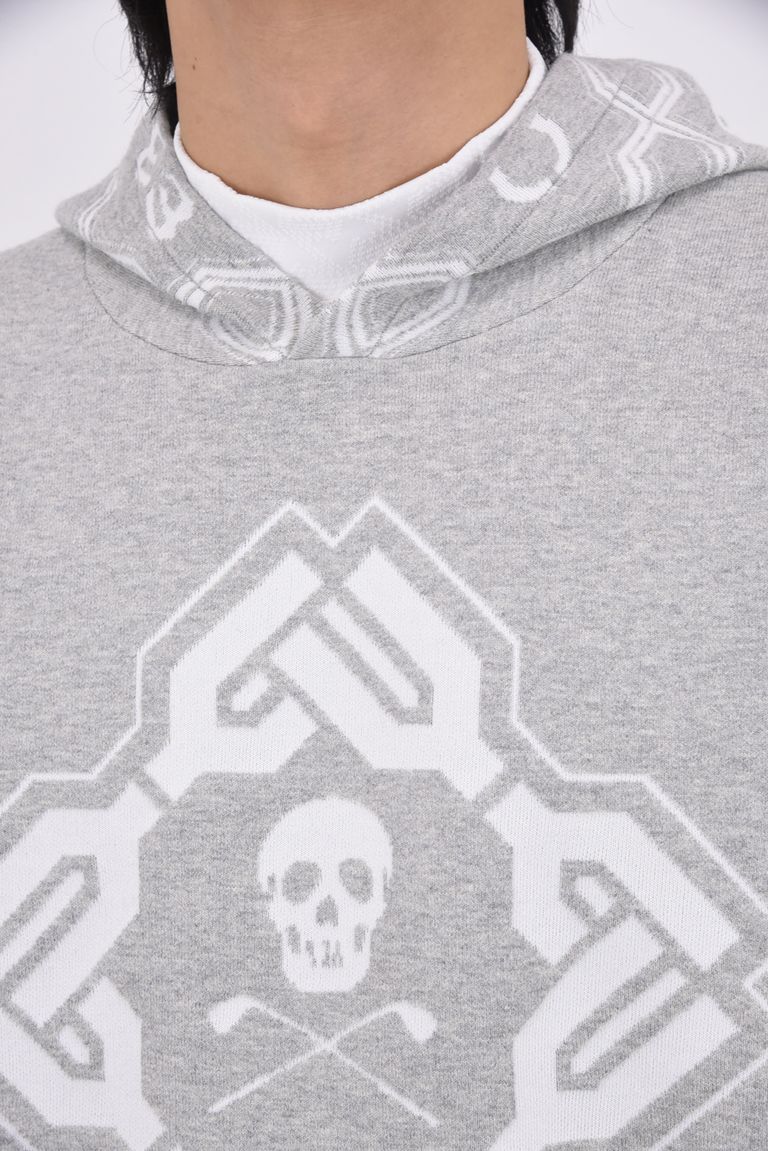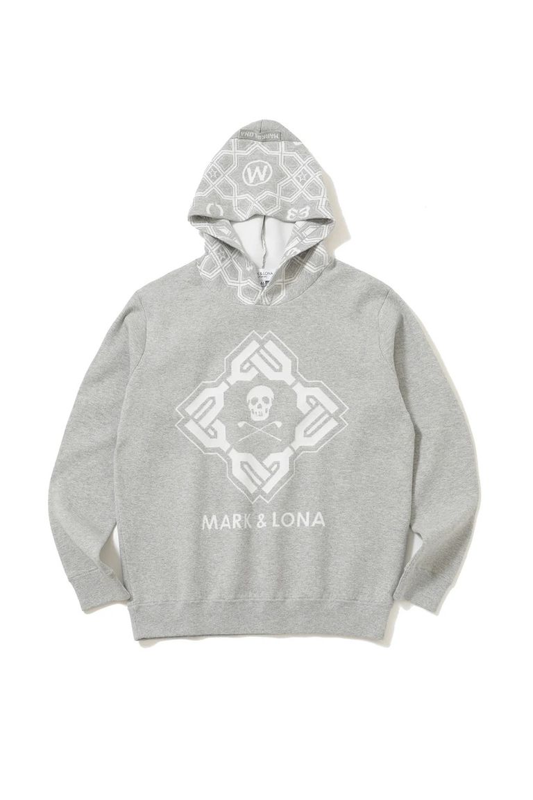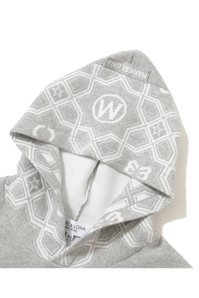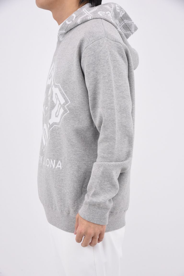 【2026SS 木村拓哉さん着用 VOL.1】 STELA CO CASH BLENDED HOODIE / ジオメトリックパターンジャカード プルオーバーニットパーカー (グレー)