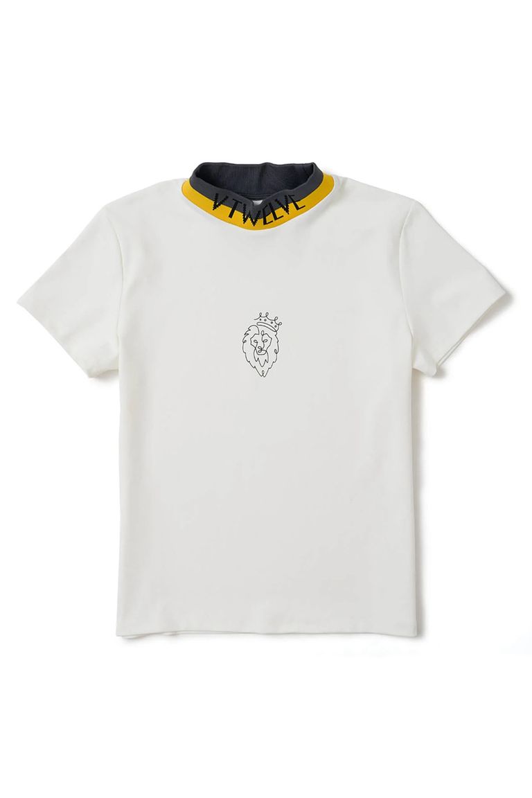 ネックのロゴ入りバイカラージャガードがポイントのモックネック。