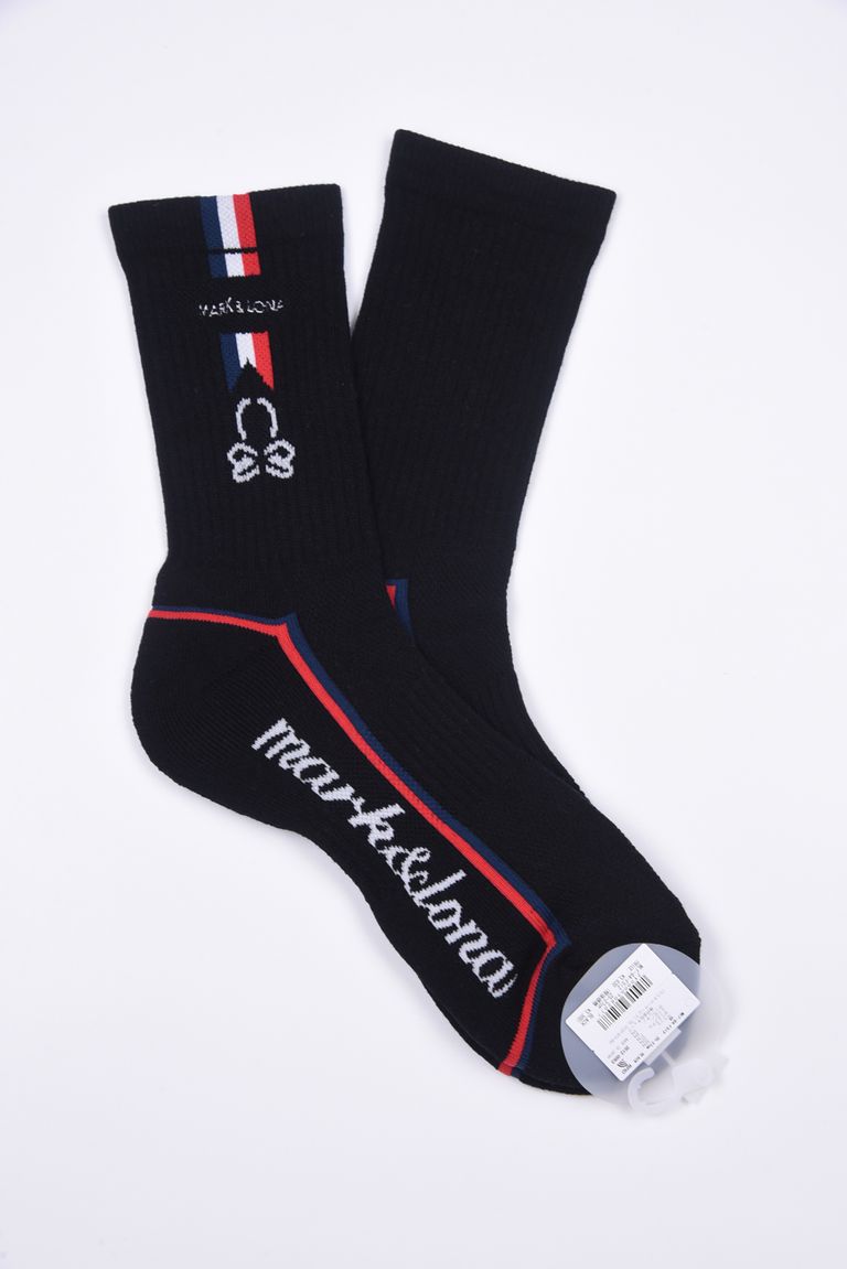 【26SS】 EMLT CUSHION CREW SOCKS / サイドライン メッシュ編み クルーソックス (ブラック)