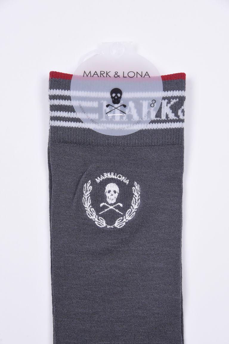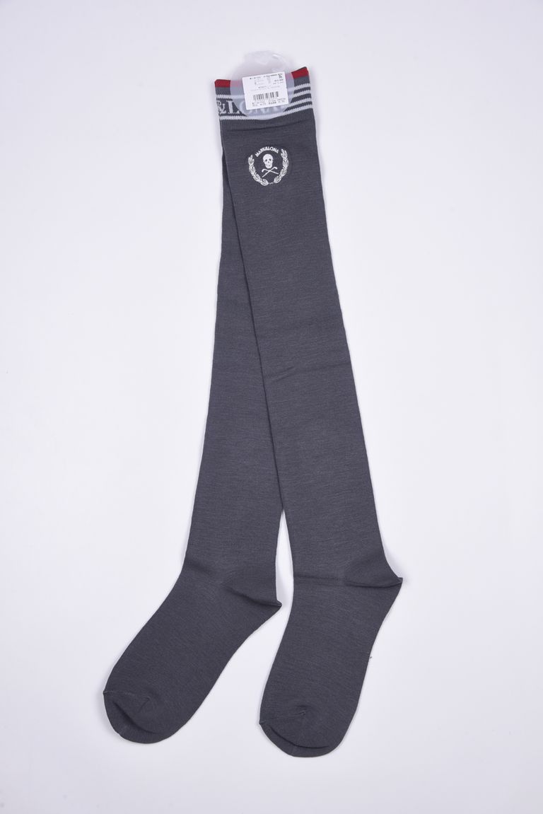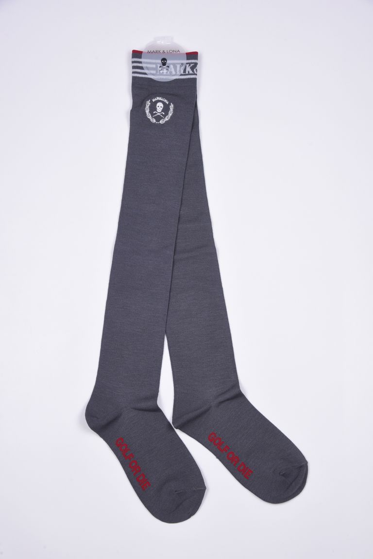 【26SS】【レディース】 LAUREL SKULL OVER-KNEE SOCKS / アイアンスカル刺繍 オーバーニーソックス (チャコール)