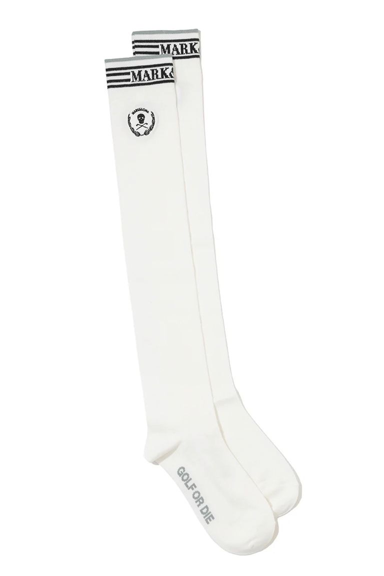 【26SS】【レディース】 LAUREL SKULL OVER-KNEE SOCKS / アイアンスカル刺繍 オーバーニーソックス (ホワイト)