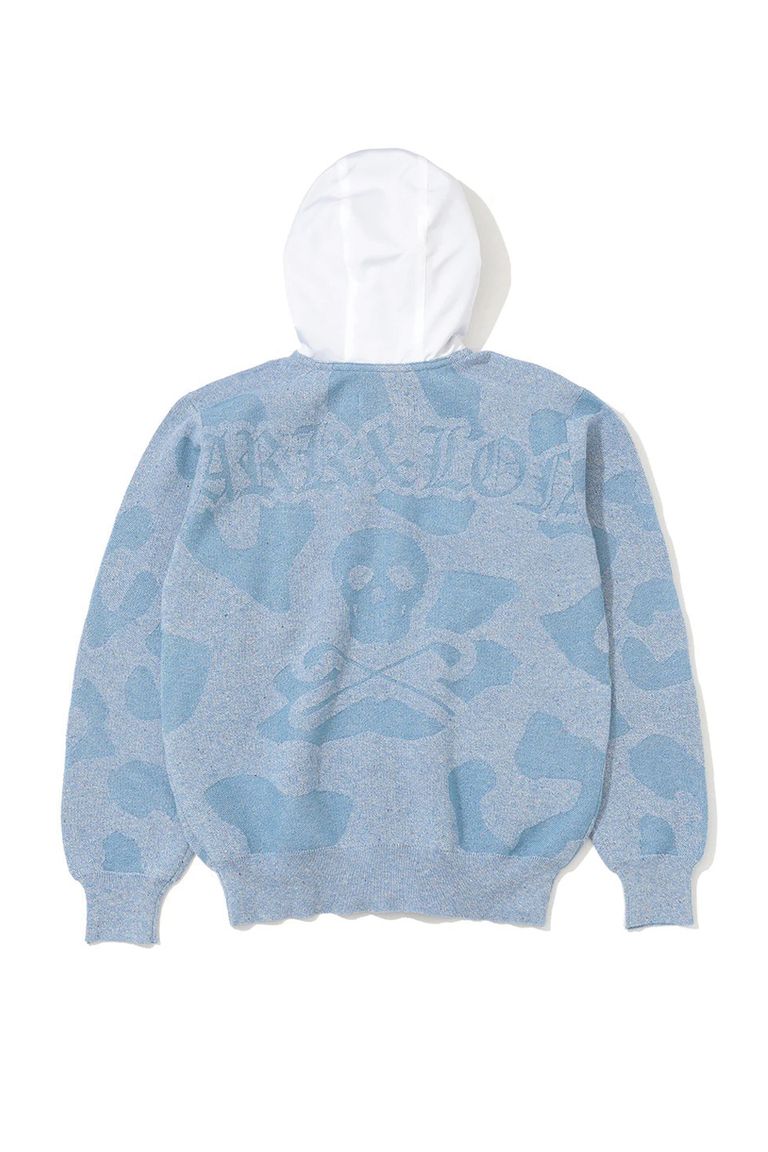【26SS】【レディース】 PANTERA PRISM KNIT ZIP HOODIE / レオパードパターン カラーネップ ジップアップニットフーディー (サックス)