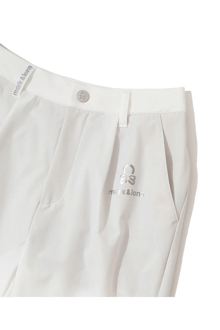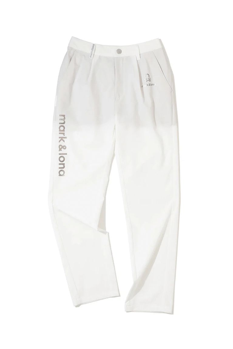 【26SS】【レディース】 ELMT SLIM LINE TAPERED PANTS / ブランドロゴ 箔プリント テーパードシルエット ロングパンツ (ホワイト)