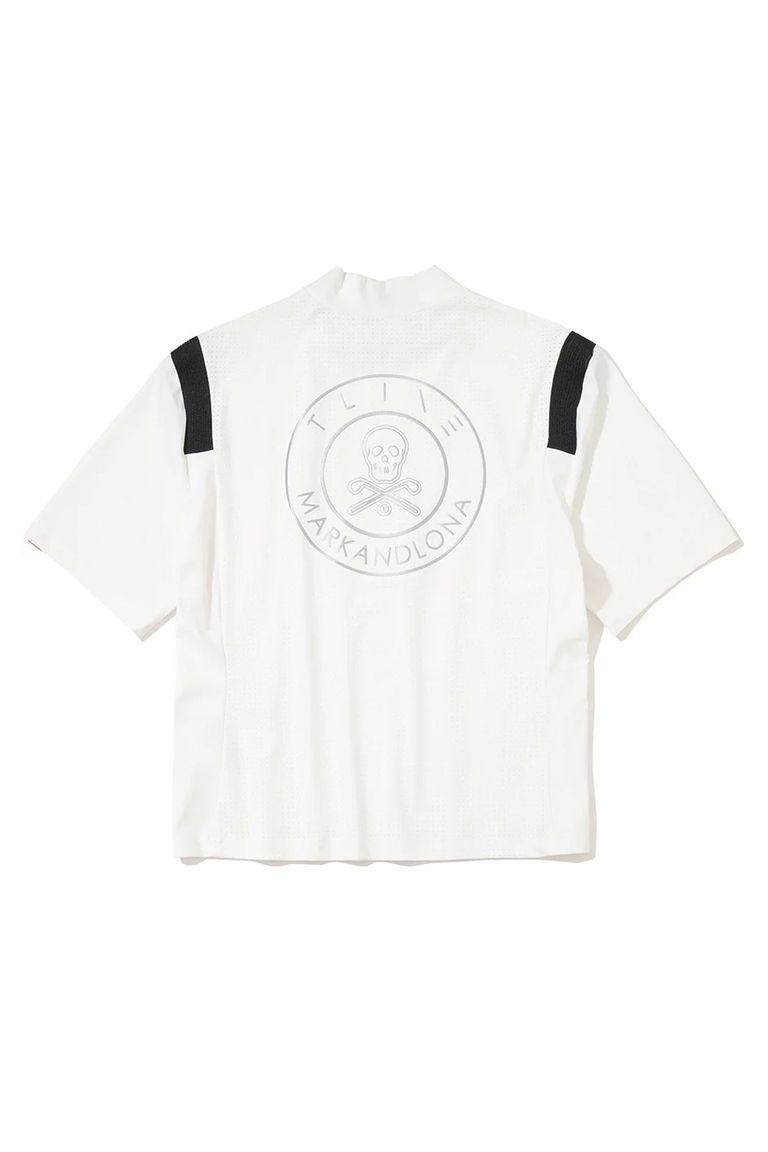 【26SS】【レディース】【T-LINE】 ACCORD VENT MOCK TEE / モノトーン ナイロントリコット パンチングロゴ モックネックTシャツ (ホワイト)