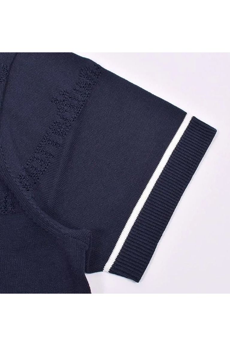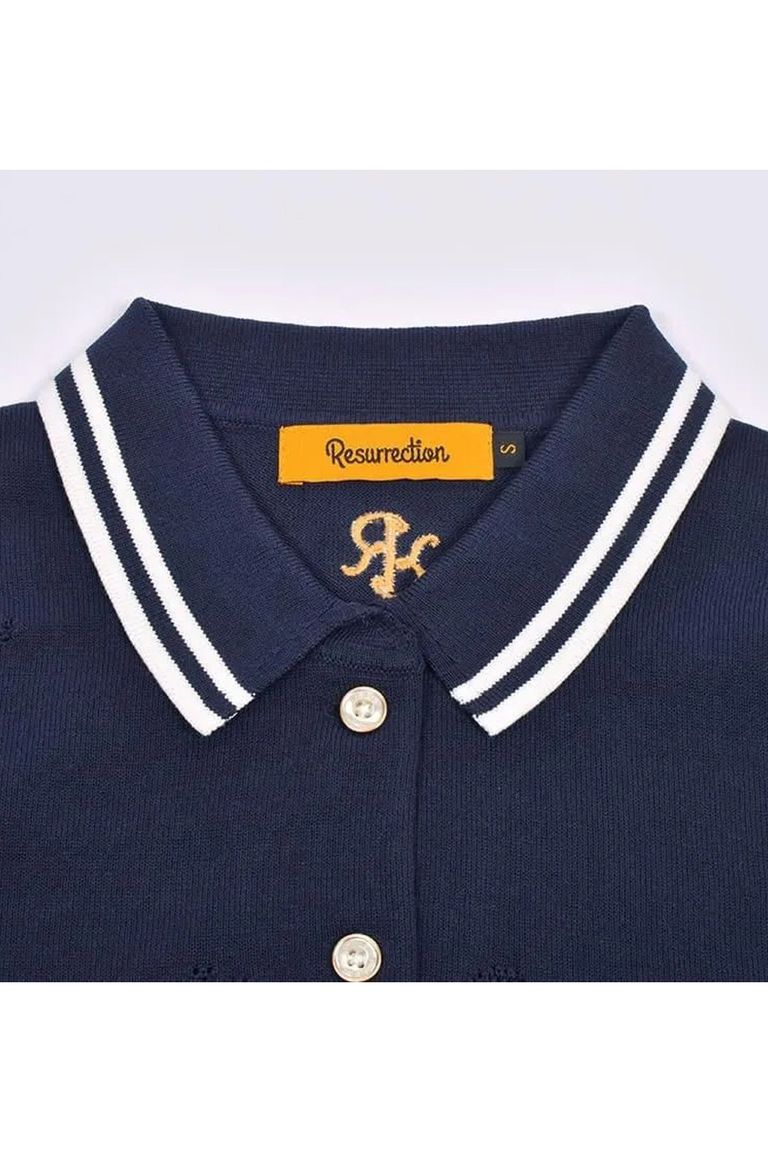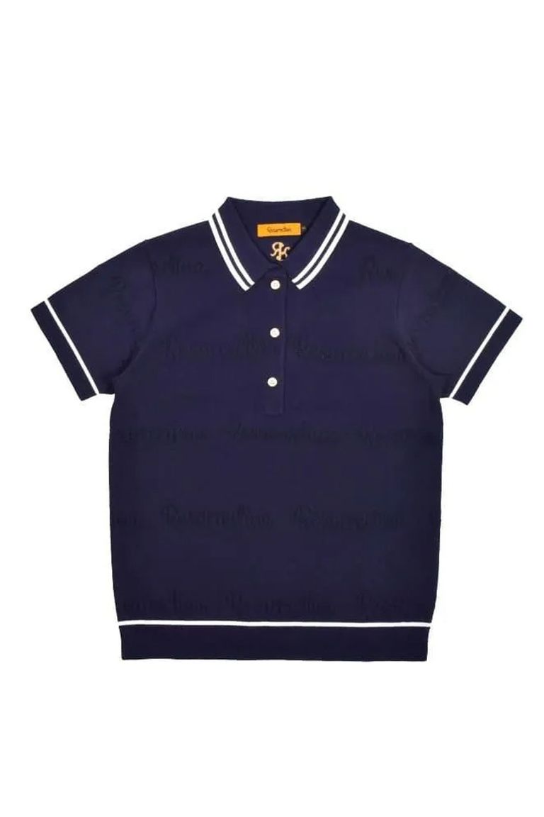 【26SS】【レディース】 MESH LOGO KNIT POLO / メッシュ編み ライン ニットポロシャツ (ネイビー)*