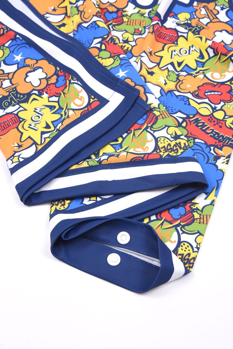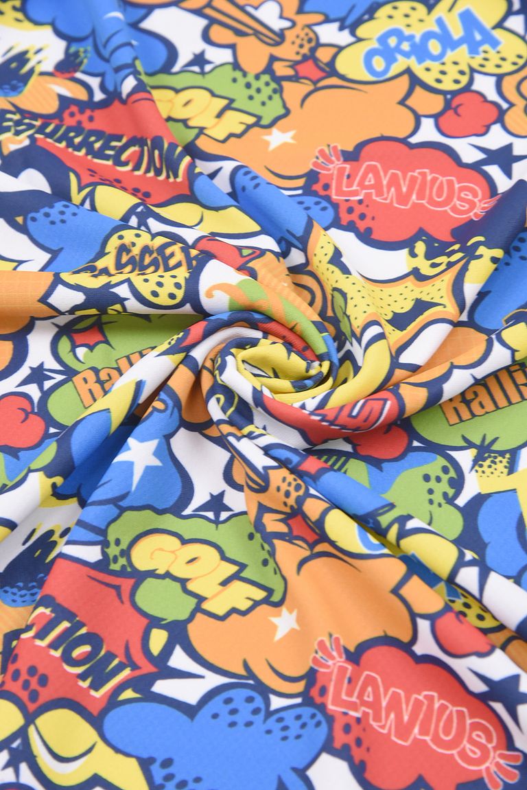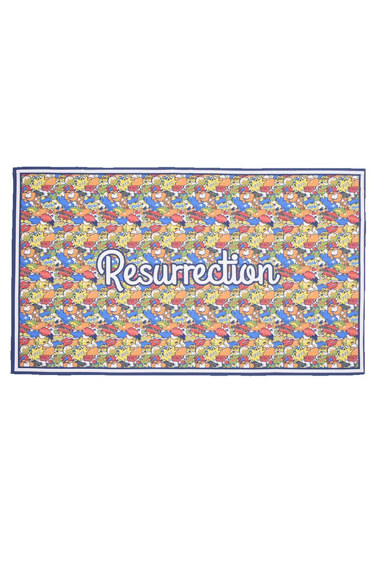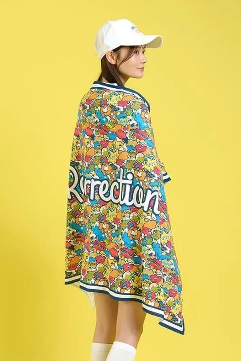 コミックは、レザレクションの商品名を散りばめたカラフルでキャッチーなデザインが特徴で、コーディネートのアクセントとして存在感を放ちます。