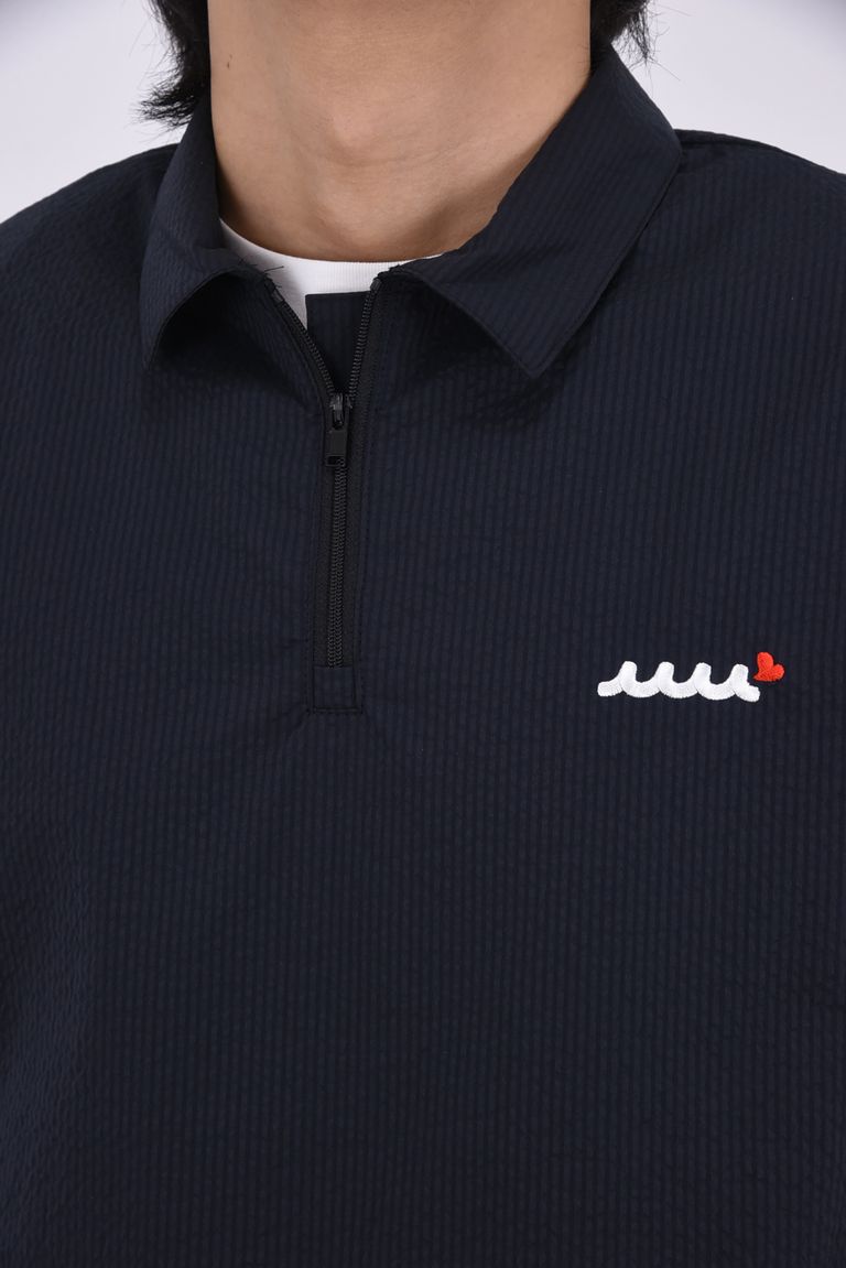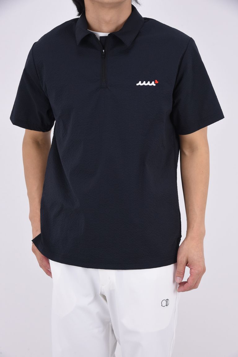 【26SS】 GENTLE SUCKER ZIP POLO / COOLMAXサッカー ハーフジップ ポロシャツ (ブラック)