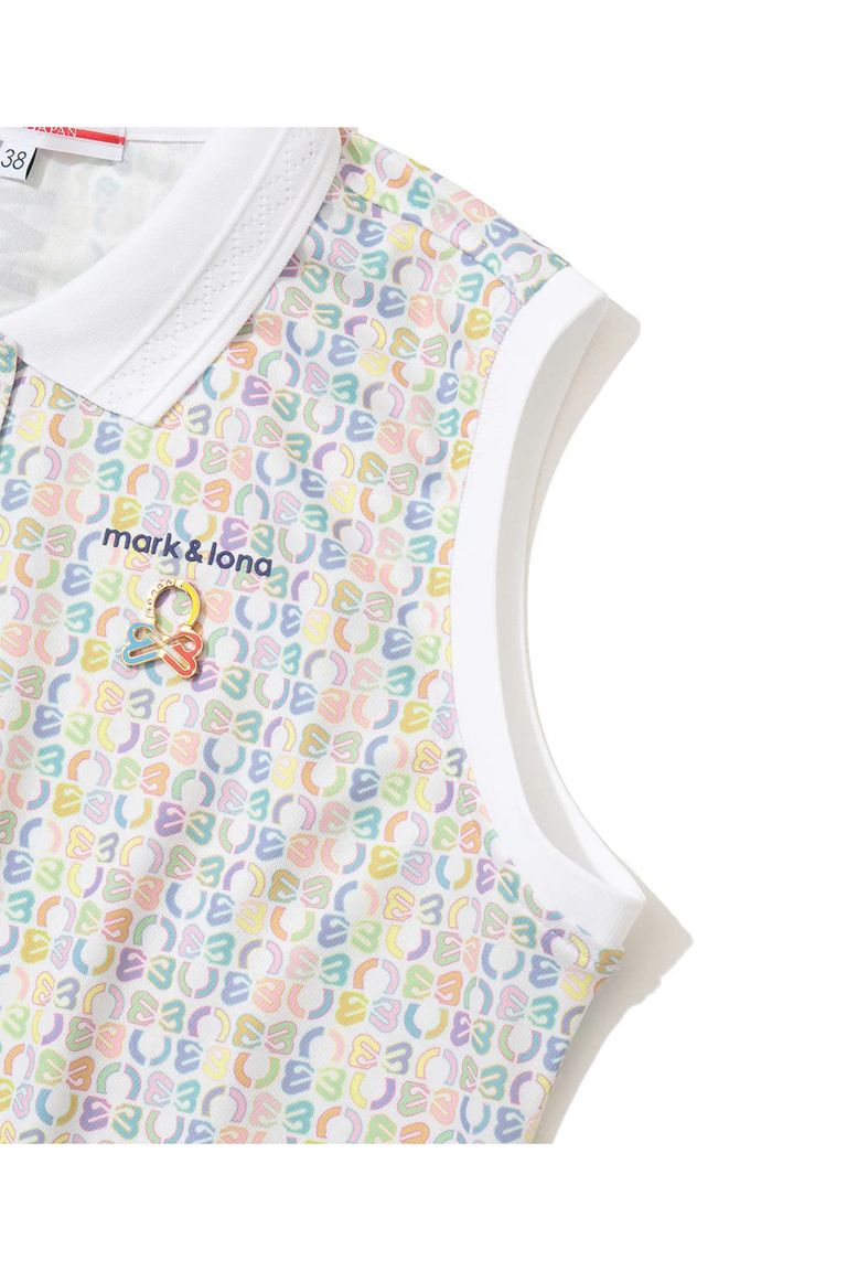 【26SS】【レディース】 RITMO MONOGRAM SLEEVELESS POLO / グラフィックロゴ総柄 ジャパンメイド ノースリーブポロシャツ (マルチ)